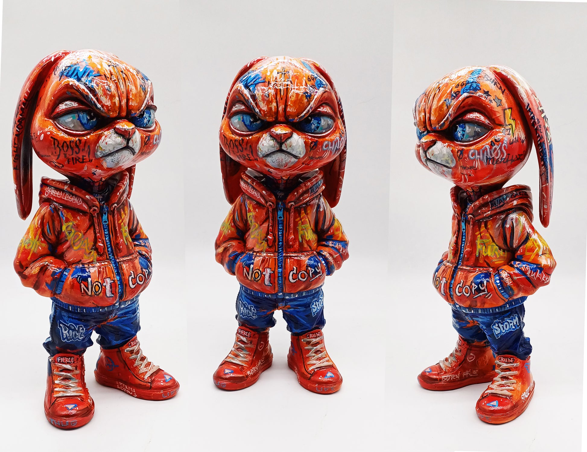 Artoons Unique -Lapin Streetwear | Sculpture Peinte à la Main | Édition Unique 1/1